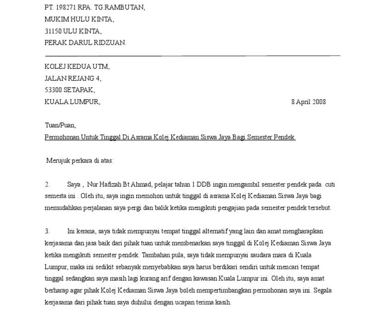 - Contoh Surat Rayuan Masuk Asrama Kerana Masalah Di...